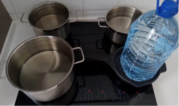 Установите пресс на поверхность. Зоны нагрева подпружинены (это техническая необходимость для того, чтобы конфорки и сенсоры плотно прилегали к стеклу), они выталкивают снизу стекло, а нам нужно, чтобы стекло плотно соприкасалось и с конфорками, и с сенсорами и с местами крепления. Иначе сенсоры могут не среагировать на нажатие. Включите в сеть варочную панель. Произведите проверку корректности работы сенсоров и конфорок. Конфорки с спиральным нагревом своим ярко-красным цветом дадут информацию о собственной работоспособности. В случае с индукционной моделью используйте миску с небольшим количеством воды, чтобы проверить рабочее состояние конфорок.
