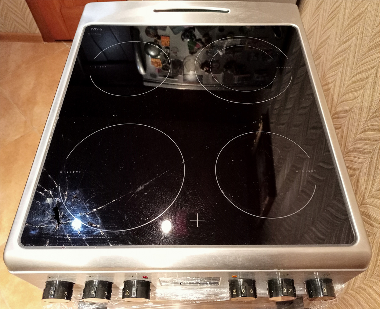 В некоторых случаях, к сожалению, так бывает, когда удар приходится на рамку (и это касается варианта с декоративной рамкой) повреждение бывает настолько сильным, что выправить рамку и вернуть ей прежнюю геометрию не представляется возможным. В таком случае мы предлагаем клиентам безрамочный вариант. Т.е мы готовим стеклокерамику под вашу модель габаритного размера (как у вас был с рамкой) и обрабатываем края и углы для безопасности пользования. 75% варочных панелей на рынке - без рамок. По сути, рамка – перестраховка и, если удар приходится на стекло, рамка не спасает стекло от разрушения. Долговечность в данном случае – вариация удачи. Легкий удар пришелся на рамку – стекло осталось целым, удар пришелся на рамку, но был столь сильным, что и рамка, и стекло разрушены. Нет ничего страшного в том, что дальше вы будете пользоваться варочной панелью без рамки.