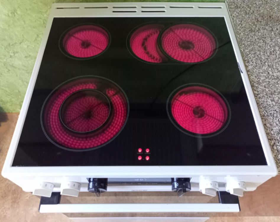 Что касается отдельно стоящих плит, если стеклокерамика уходит под рамку (как определить, что это вариант не "со швом", описано выше),  монтаж проходит в два больших этапа. Как правило это плиты с спиральным нагревом. Если рассматривать конструкцию, то выглядит это следующим образом: стекло приклеено к рамке, к стеклу приклеены направляющие, к которым крепятся блины спирального нагрева. Поэтому в первый день эту конструкцию надо разобрать, отсоединить блины спирального нагрева, срезать направляющие с стекла, отделить/срезать стекло от рамки.  Далее перевернуть рамку, приклеить стекло, и к стеклу приклеить направляющие. Все это сохнет сутки. Через сутки собрать конструкцию обратно. Технически это самый сложный вариант монтажа. Для него требуется два приезда мастера.